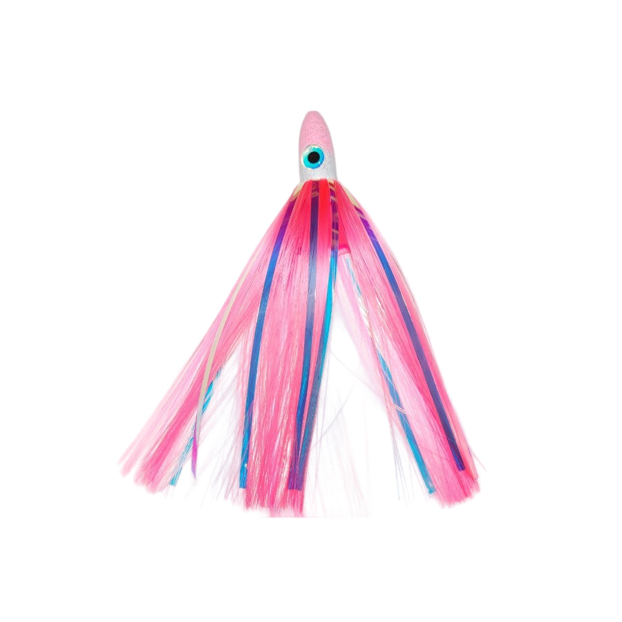 Another member of the Blue Water Candy premier JAG series. These skirts are assembled with the finest nylon and mylar fibers available. The sensational two-tone paint jobs and molded eyes make for some of the most attractive heads in the industry. Great for dredges, daisy chains, and nose baits. 1¾ ounces in weight. 8” overall length. Use with mono up to 300#.