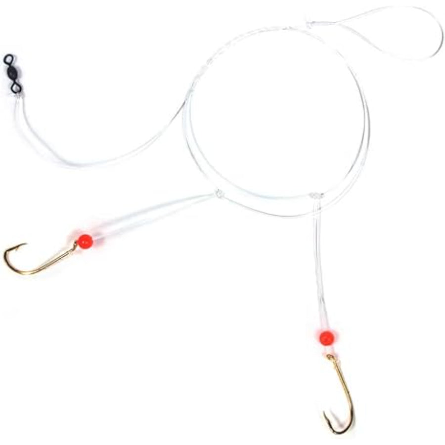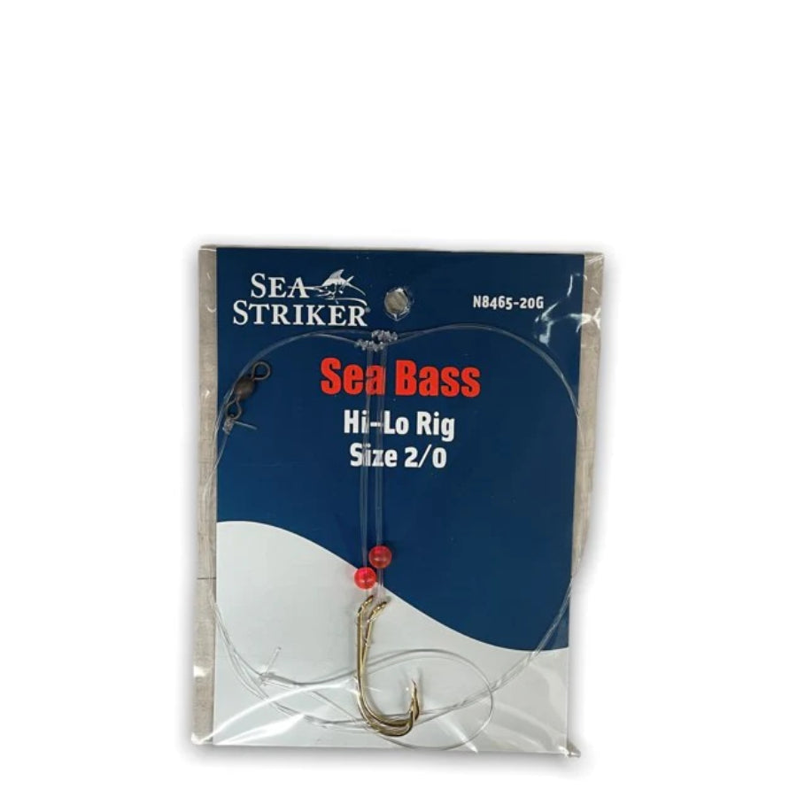 The Sea Striker Hi-Lo Sea Bass Rig is designed for serious bottom fishing. Made with durable monofilament and corrosion-resistant hooks, it’s perfect for targeting sea bass, porgies, and flounder. The hi-lo setup presents multiple baits at different depths to attract more fish. Size 1 rigs feature three hooks, while all other sizes include two hooks. Ready to fish straight from the package—just add bait and drop to the bottom for reliable saltwater performance.