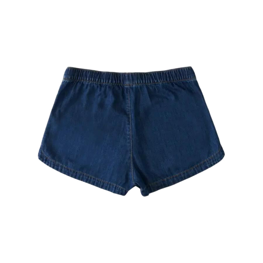Sunny days call for summer skin. These lightweight denim shorts feature woven chambray fabric for a classic, comfortable fit ideal for lounge days or beach trips. Complete with side pockets and a trendy scalloped hem.