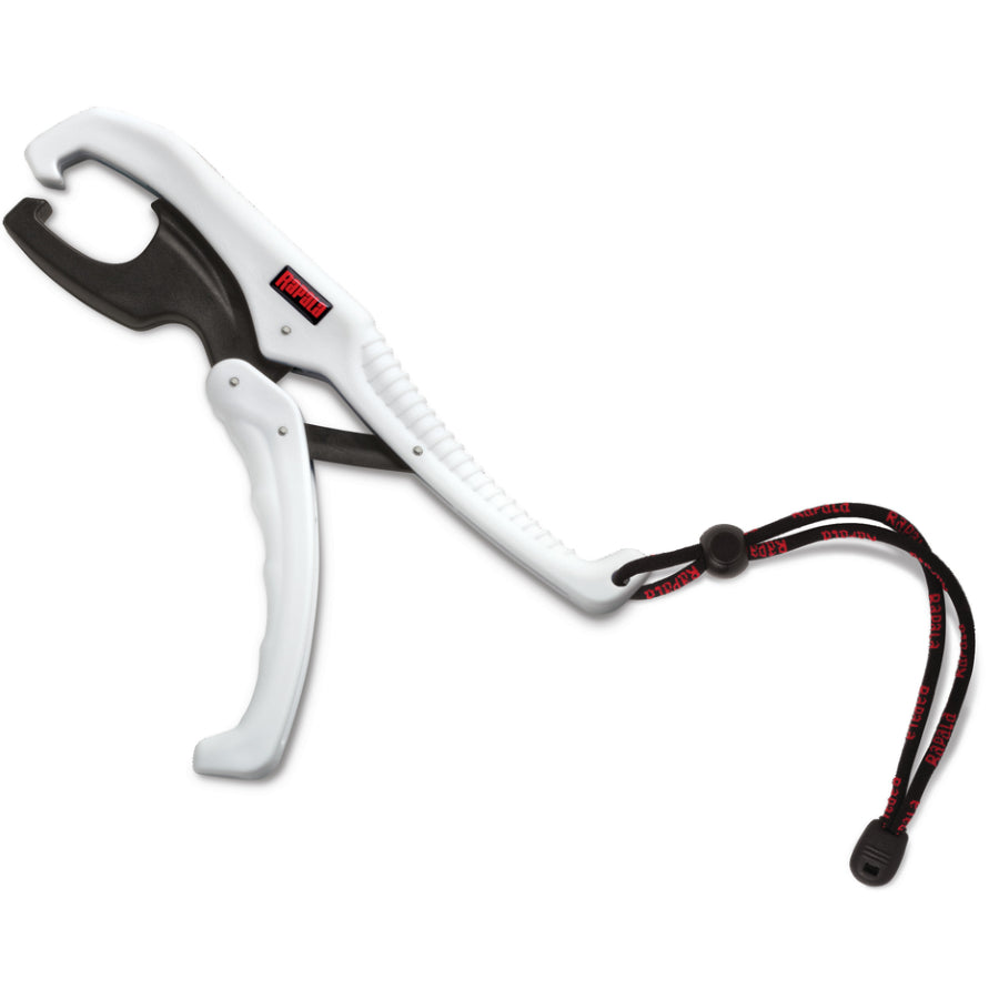 Rapala 9" Floating Fish Gripper make fast work of landing and releasing your catch without harm to you or the fish. Securely hold fish with one-hand. Quick release mechanism holds strong, yet releases with ease. Built from durable, molded heavy-duty plastic for ultimate corrosion resistance. Includes wrist lanyard for security.
