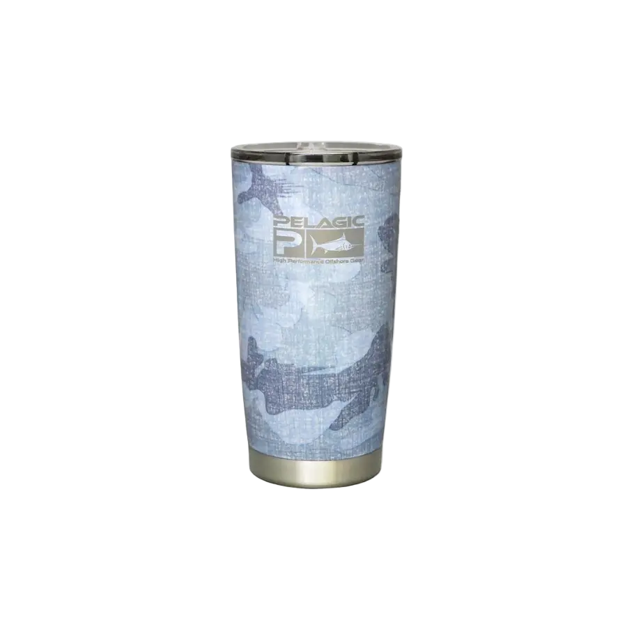 Hot coffee for the morning ride out to the grounds, ice-cold celebratory beverage on the ride back to the dock - the new PELAGIC Tumbler 20oz Fish Camo believes in getting you there with whatever you're sipping at the perfect temperature. Along with the stainless steel, double-walled, vacuum-sealed body, the copper-plated inner core ensures that your ice will stay frozen and your drink will stay strong. Note: Hand Wash Only.