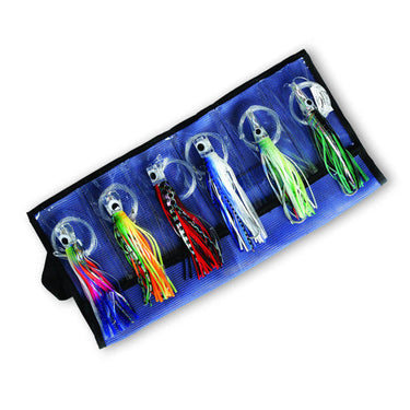 The Williamson Game Fish Kit is a set of 6 skirted saltwater trolling jigs. The kit contains two 6 inch Rigged Tuna Catchers, two 6 inch Rigged Dorado Catchers, and two 6 inch Rigged Sailfish Catchers. All lures are rigged with quality VMC hooks and Suffix leader. Kits comes in an easy-to-clean mesh storage bag. Perfect for tuna, dorado, and billfish and more!
