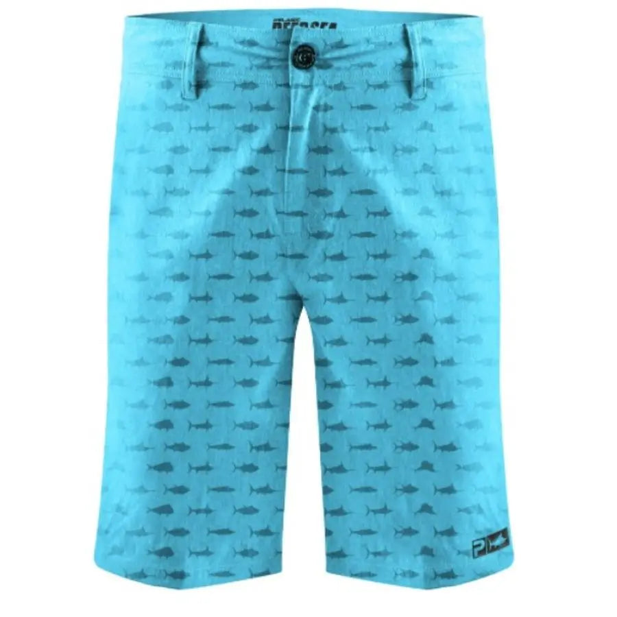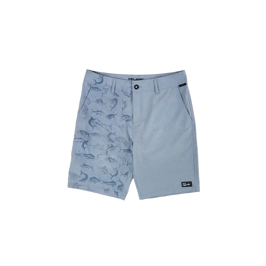 Our best-selling Deep Sea Hybrid Fishing Shorts are now available in youth sizes featuring an inside adjustable waistband. Activated by water, our H2O Activate Fabric Technology magically morphs into a medley of your favorite pelagic game fish. Featuring 4-way super-stretch fabric, front pockets, rear pockets, and a lined utility pocket, the Pelagic Youth Deep Sea Hybrid Fishing Shorts are great for both on and off the water occasions.