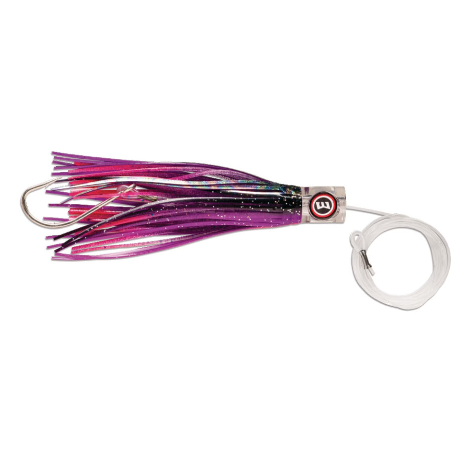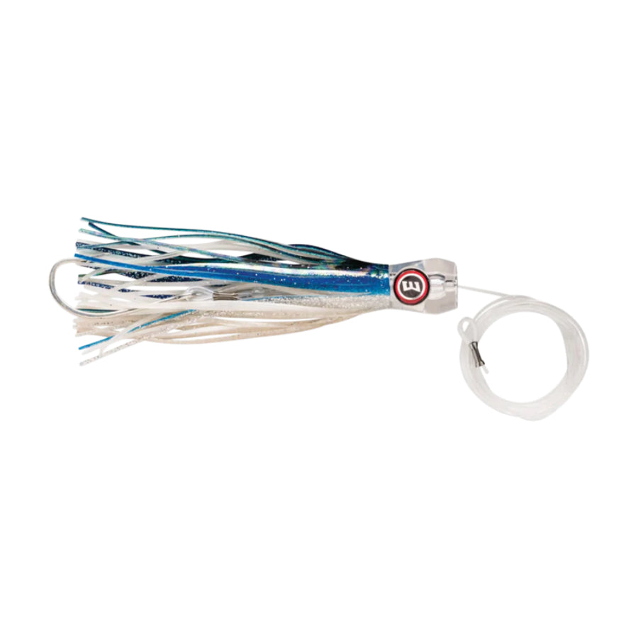 The Williamson Soft Dorado Catcher is a pre-rigged, high-performance trolling lure designed for offshore anglers targeting big game species like Mahi-Mahi, Sailfish, Tuna, and more. Ready to fish straight out of the package, the DCR6 comes rigged with 5 feet of 130 lb Sufix® mono leader and a VMC® 8/0 Perma Steel Hook for solid hooksets and durability in saltwater conditions. Its soft flat-faced head features a large rear cavity that perfectly accommodates a ballyhoo rigging spring, allowing for a snug, streamlined fit. This tight bait-to-head presentation not only improves protection but also enhances performance at trolling speeds up to 7 knots. The premium PVC Flashabou skirt and holographic 3D eyes add irresistible flash and realism, making it a go-to choice for serious offshore fishermen.