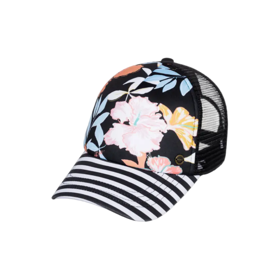 The Beautiful Morning Hat from Roxy is a trucker style hat with a print on the front, Roxy label on the back, and adjustable snapback. Made from 100% Polyester. One size fits all.