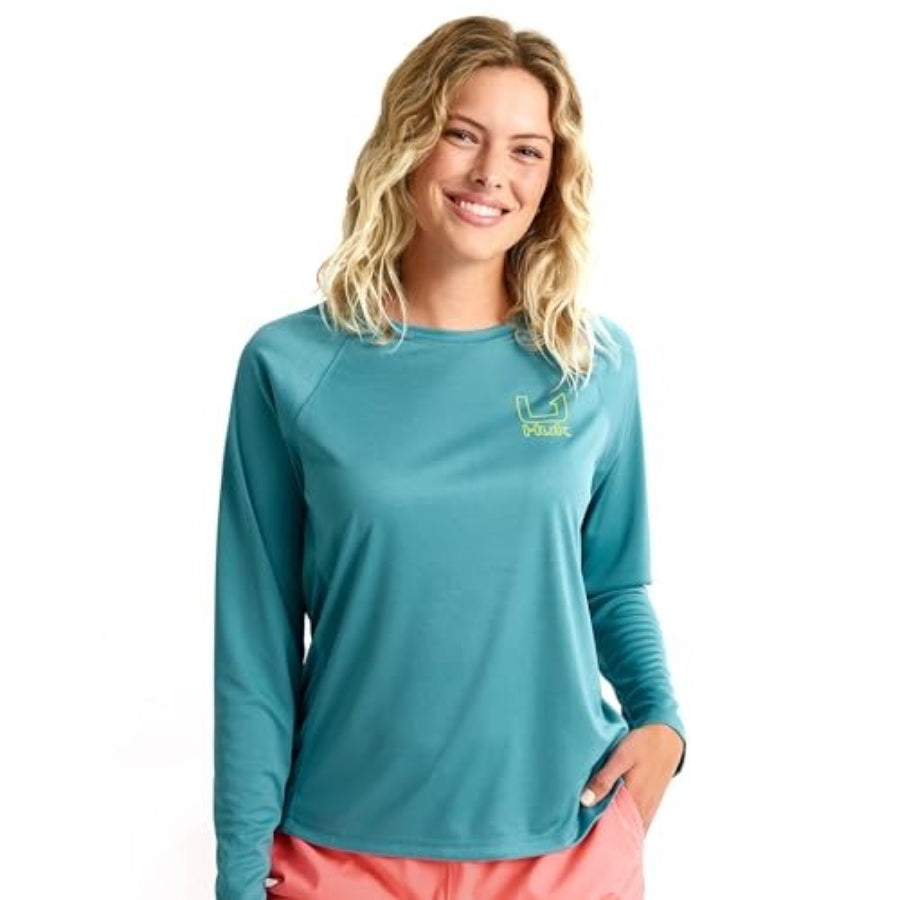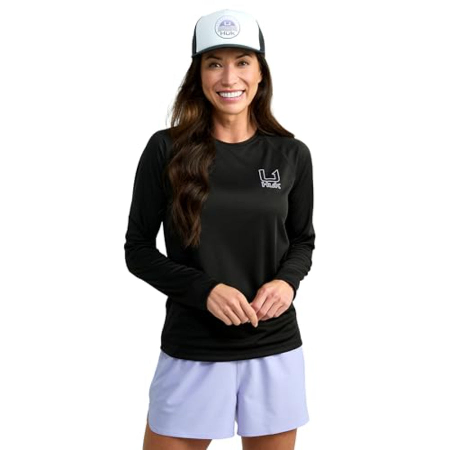 This lightweight crew neck shirt with mesh vented sides is an ideal layer on cooler days and perfectly worn by itself when it's hot. With +UPF 50 to block UVA and UVB rays for all-day sun protection, stain-resistant, and superior breathability. This fishing hoodie protects your skin from the sun's harmful rays - Huk added the most advanced sun-blocking +50 UPF materials to their apparel to block both UVA and UVB rays. Cooling fibers work to remove heat from the surface of your skin, helping to dump body heat and keep you more comfortable and on the water longer. Huk's hydrophobic, or “water-hating” quality within the fibers of this fishing hoodie, transport the sweat away from the skin to the exterior of the shirt where it can evaporate more efficiently.