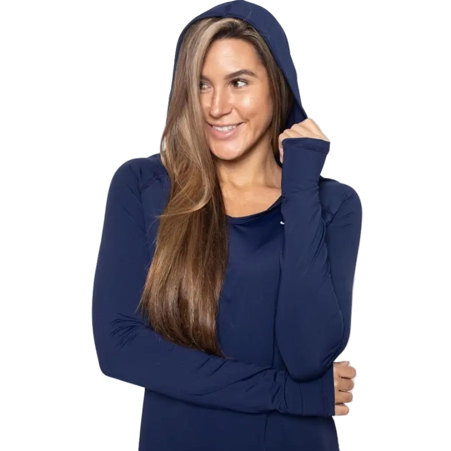 Enjoy the same luxe features of the Classic Performance Collection with the added hoodie + thumb holes. This Top is not only going to save you under the sun but will also come in handy as the perfect layer when the temp drops. Fashion, comfort, and performance all in one.