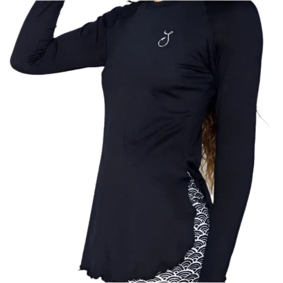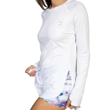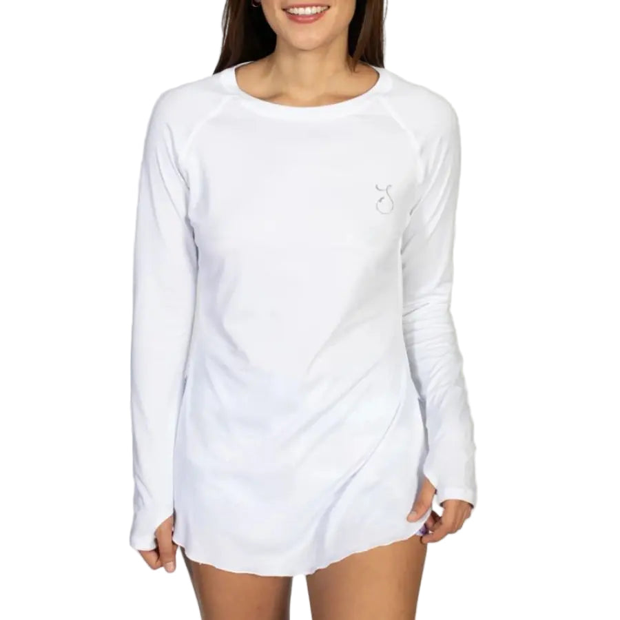 The Flowy is a Reel Skipper original—where performance meets style. Designed as an elevated active top and a chic cover-up, it features a breezy tunic silhouette with side slits for ease and movement. Crafted from soft microfiber with UPF 30+ sun protection and moisture-wicking technology, it keeps you cool, dry, and protected all day long. Finished with thumbholes and the signature Skipper “S” logo, this versatile piece transitions effortlessly from sea to shore.