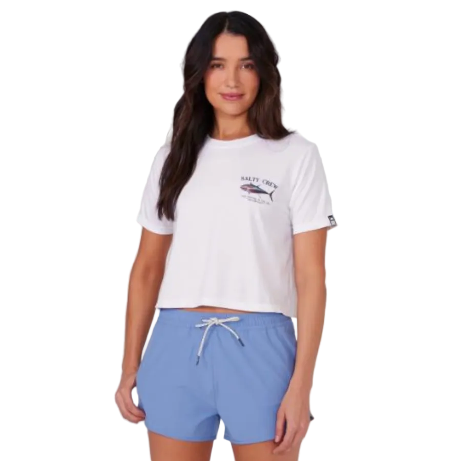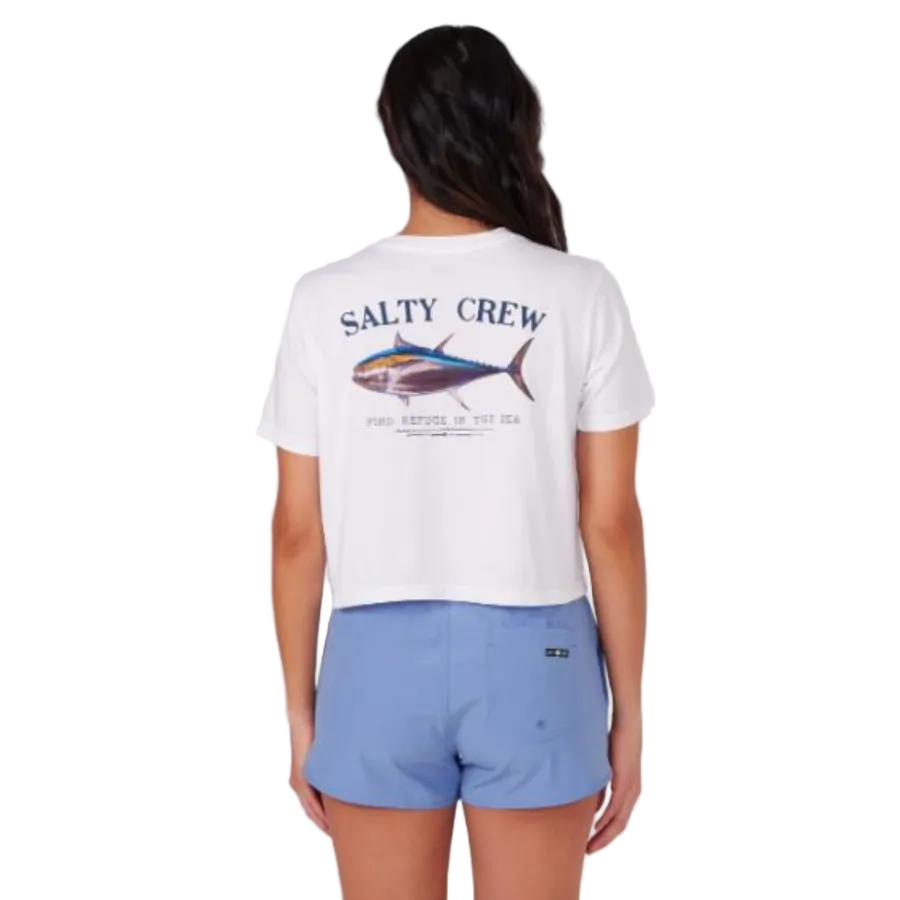 Embrace the call of the deep with the SALTY CREW Big Blue Crop Tee. This isn´t just a shirt; it´s wearable art from an exclusive collaboration with renowned artist Amadeo Bacher. His breathtakingly vivid fish graphics are screen-printed on the front and back, celebrating the ocean´s majestic giants. Crafted from soft, breathable cotton, its modern, cropped, boxy fit offers a relaxed feel and a flattering look. Perfect for any adventuress who lives the saltwater lifestyle, it´s a statement piece that combines comfort, style, and a passion for the sea