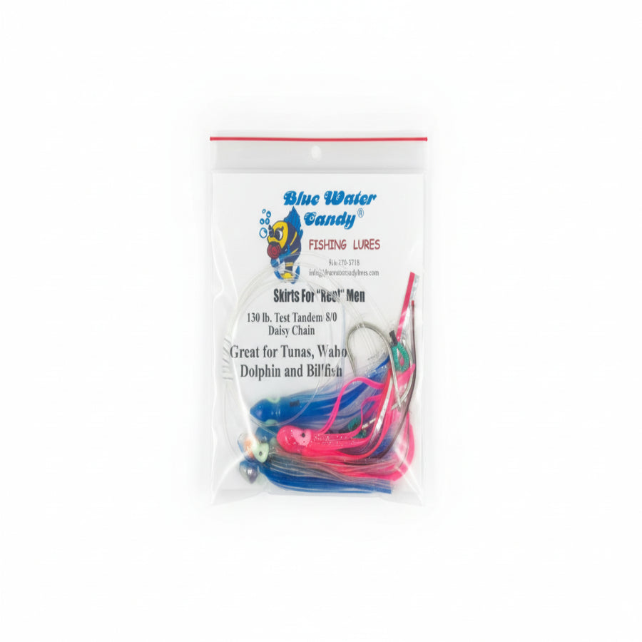 A proven offshore teaser designed to draw aggressive strikes. Featuring five high-quality octopus skirts professionally rigged on durable mono, this chain creates lifelike movement and flash in the spread. Tandem Mustad hooks provide dependable hook-up power, while mylar inserts in the chaser add extra flash to grab attention in all water conditions. Built for serious trolling, it is reliable choice for attracting pelagic predators.