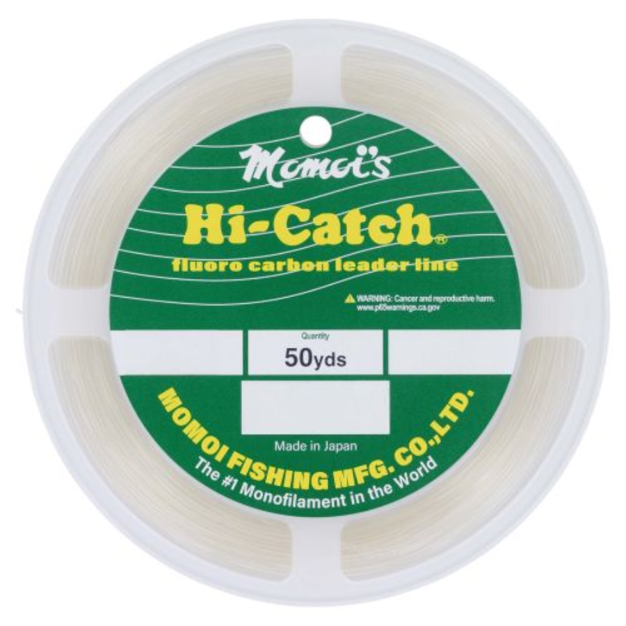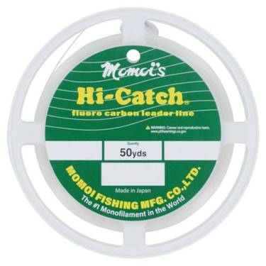 Momoi Hi-Catch Fluorocarbon Leader gives the angler the added advantage when pursuing line-shy gamefish. Momoi's Hi-Catch Fluorocarbon is crystal clear without the yellow tint that most fluorocarbons possess. In addition to excellent abrasion resistance, Momoi's Hi-Catch Fluorocarbon leader has a refractive index very close to that of water, making it virtually invisible to all gamefish. Momoi's Hi-Catch Fluorocarbon is also much denser than normal mono, making it sink faster, getting your bait down quickly. Momoi's Hi-Catch Fluorocarbon also does not absorb water so you don't have to worry about losing line strength after long, drawn out battles!