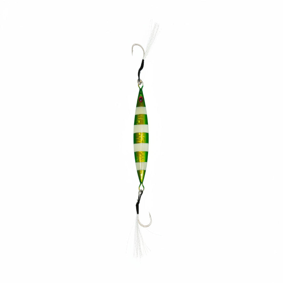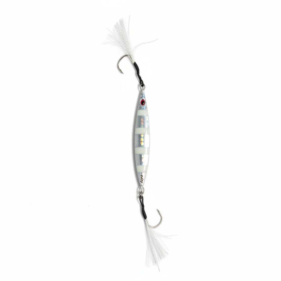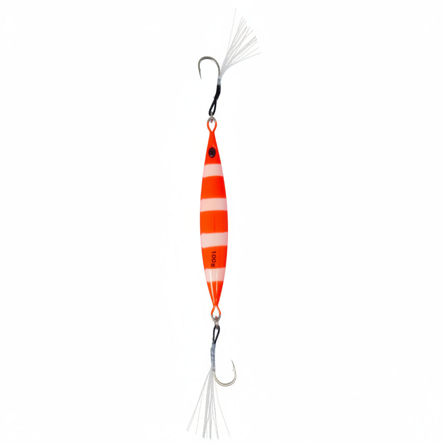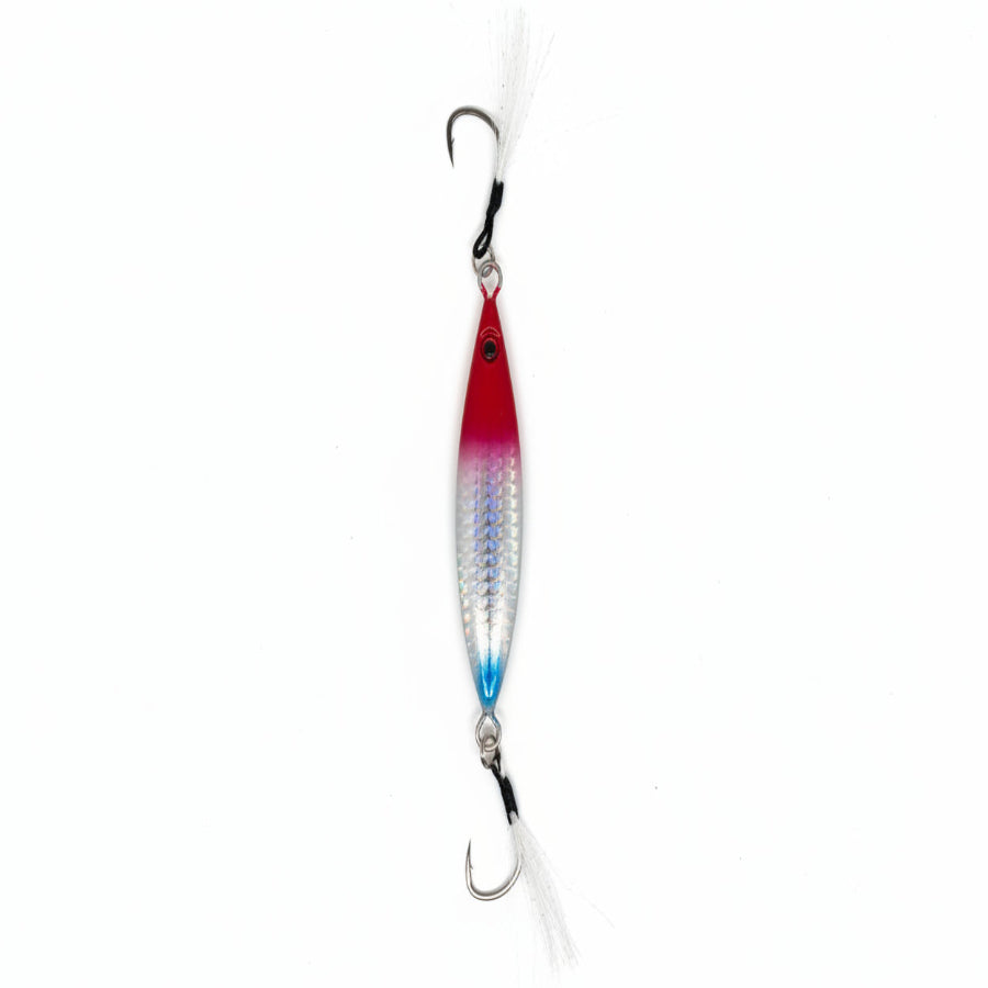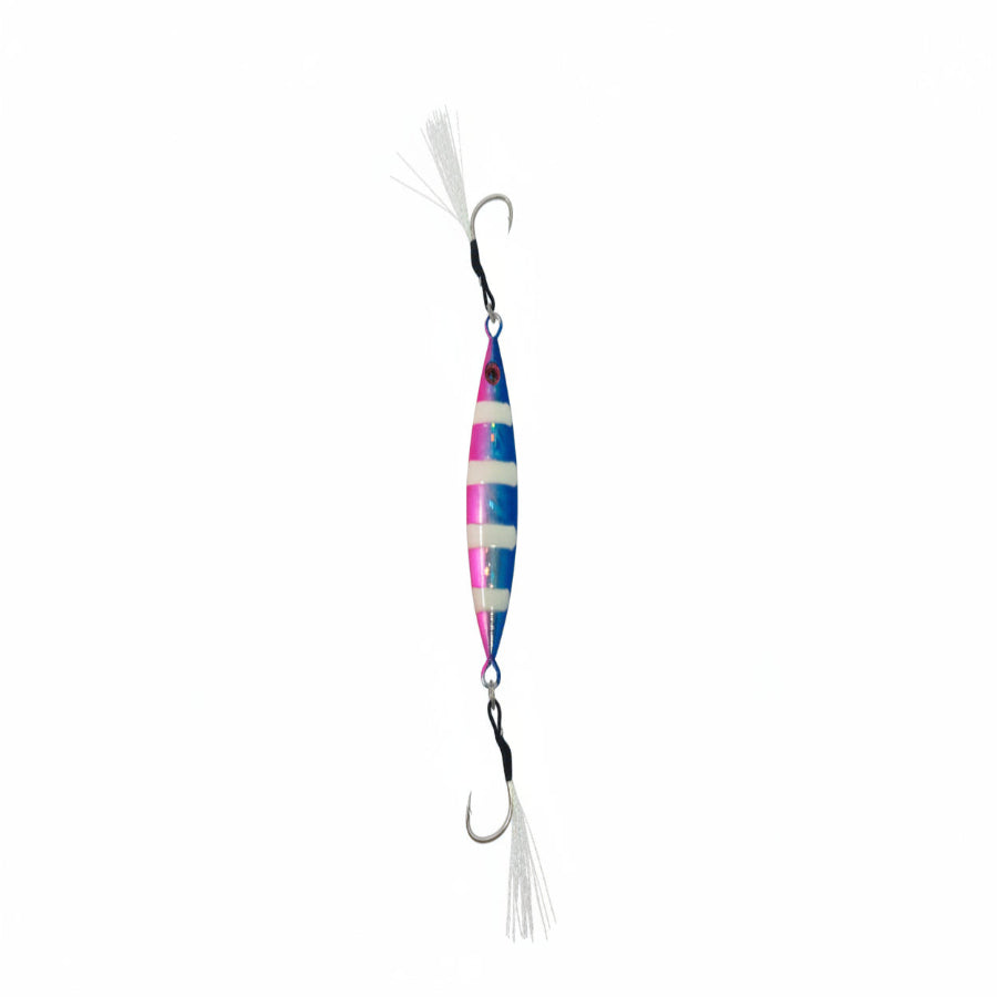 Versatile metal fishing lure designed for slow-pitch and vertical jigging. Its butterfly-style shape creates an enticing flutter and darting action as it falls and is worked through the water column, mimicking wounded baitfish to trigger aggressive strikes. Durable and easy to fish, it’s ideal for anglers targeting multiple depths with a lively, action-packed presentation.