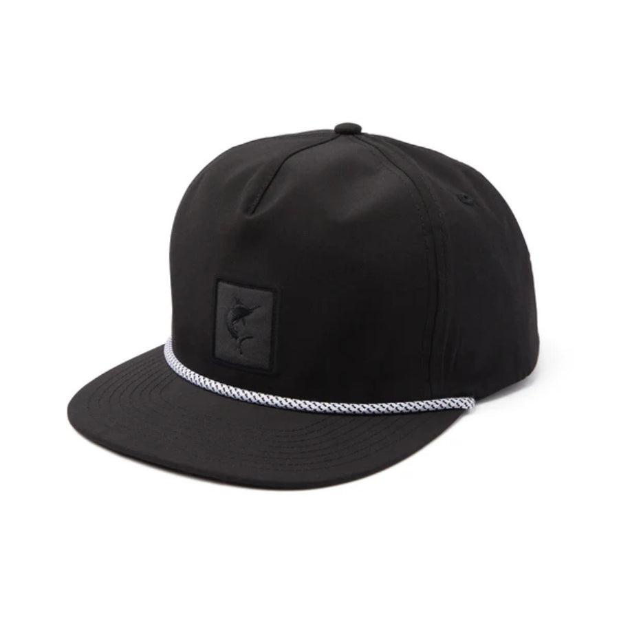 The Marlin Unstructured hat has an unstructured, mid-crown, relaxed fit, constructed with a water resistant nylon that will provide days of comfort. The traditional snapback and woven rope will keep you looking good on or off the water.