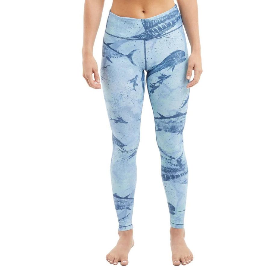 Both versatile and stylish, you can do it all in the Pelagic Maui Open Seas Camo Leggings. They not only look good but also provide sun protection and moisture-wicking capabilities for added comfort. They have water and stain-repellent technology to keep you dry, flatlock panel stitching for durability, and a lightweight poly-spandex blend for flexibility and support. The Pelagic Maui leggings feature ocean-inspired designs, reflecting your love for the sea. They showcase Gyotaku art, a traditional Japanese fish printing technique, paying tribute to the ocean's beauty. Whether you're on the water or beach, these leggings offer both style and functionality.
