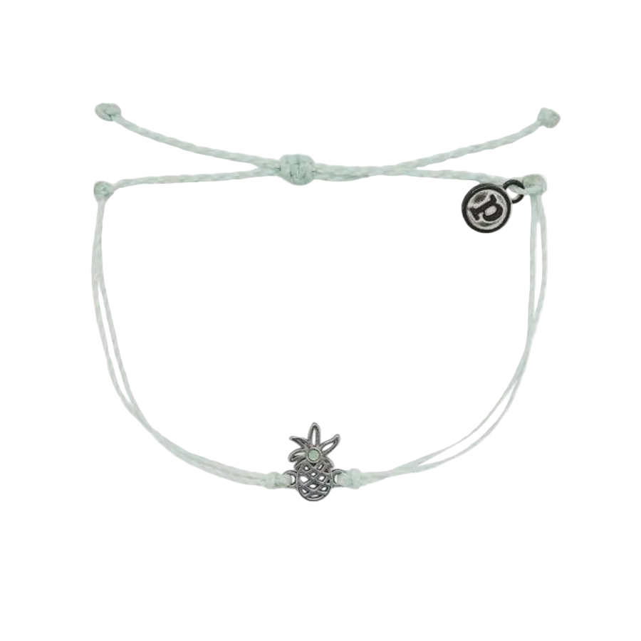 Accented with a cute pineapple charm and shiny Swarovski White Opal stone for a hint of sparkle! The charming centerpiece is perfect for the beach and tropical isles, making it a summer must-have! Features a rose gold-coated “P” charm made of copper. The signature charm adds a subtle finishing touch to the band while the "P" inscribed on its surface represents our commitment to living the "Pure Life." This accessory is guaranteed to be 100% waterproof. Surf, snowboard, swim, or even take a shower with them on! Its wax-coated bands will not fade or disintegrate even when it comes into contact with water. This bracelet comes with an adjustable band that allows wearers to create the perfect fit for them. The bracelet’s band can be expanded from 2 to 5 inches in diameter to accommodate larger wrist sizes.