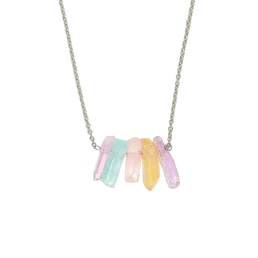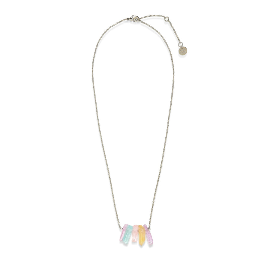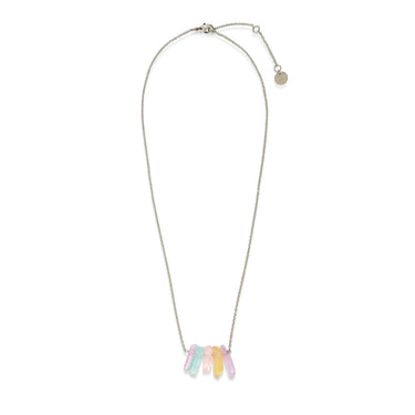 Wanna instantly brighten up any outfit? Then toss on our Rainbow Crystal Necklace! Set on a classic silver chain, this style features five quartz chips in a variety of pastel hues. Pair it with our other gemstone designs to get in on the crystal craze.