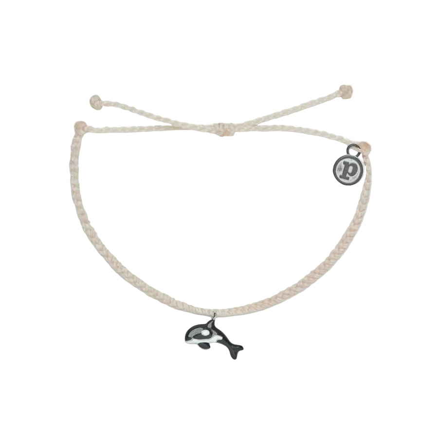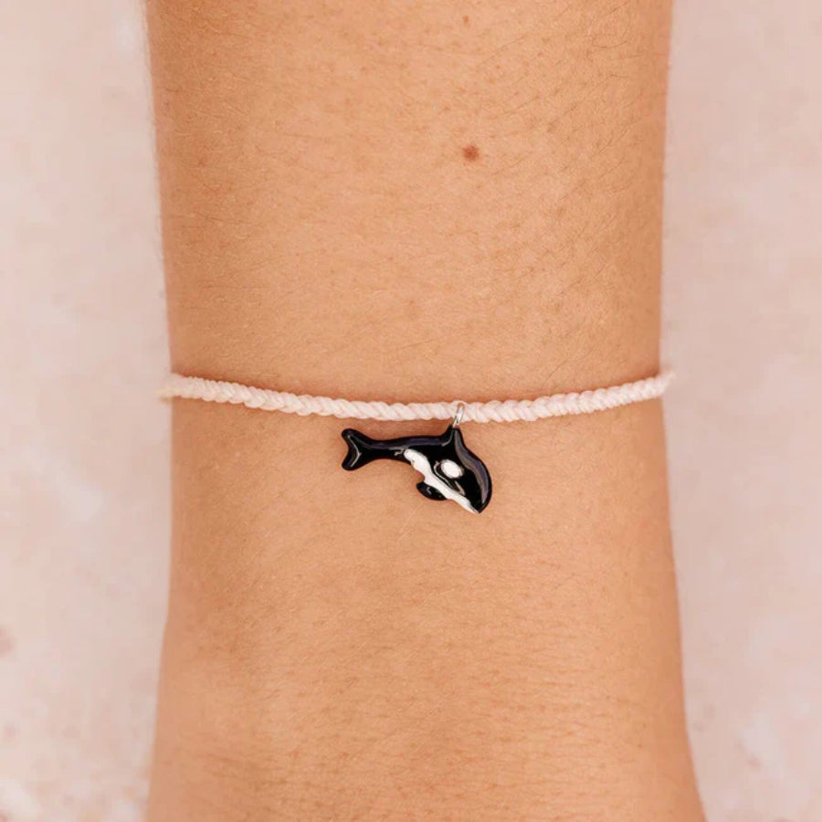 Make a splash this spring with Pura Vida's Orca Charm Bracelet. Available in string shade vanilla—this bitty braid design features a dangling orca charm with black and white enamel.