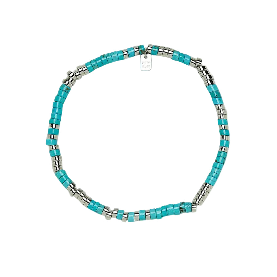 PURAVIDA TURQUOISE BEAD STRETCH SILVER ANKLET