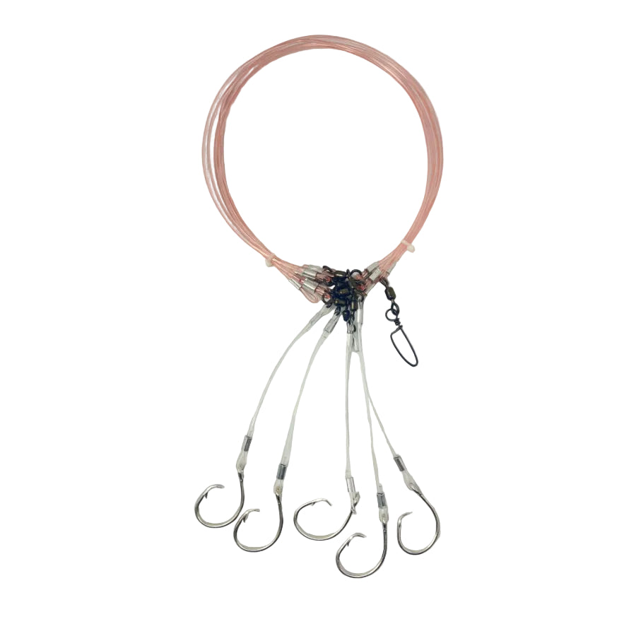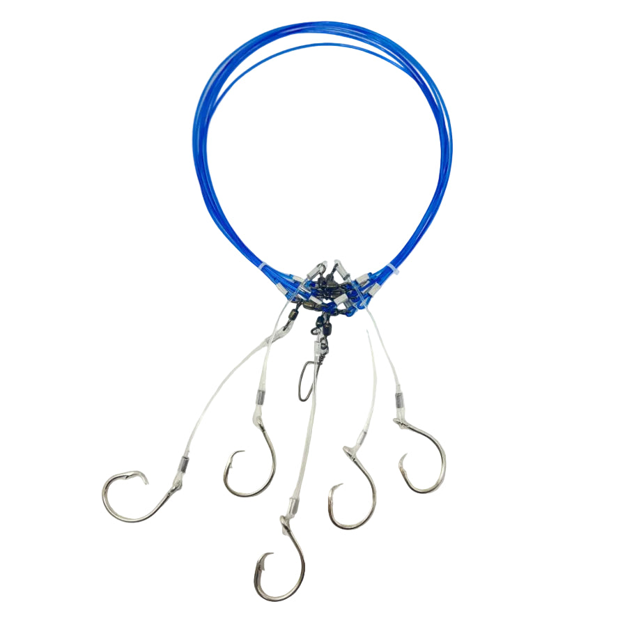 The R&S Custom Bait Deep Drop 5 Hook Rig is built for serious deepwater fishing, featuring five ultra-sharp, corrosion-resistant hooks perfectly spaced for natural bait presentation and higher hookup rates. Hand-tied with heavy-duty mono leader and professionally crimped connections, this rig is designed to withstand extreme depths and hard-fighting species, making it ideal for targeting tilefish, grouper, snapper, and other deepwater fish using electric or manual deep drop setups.
