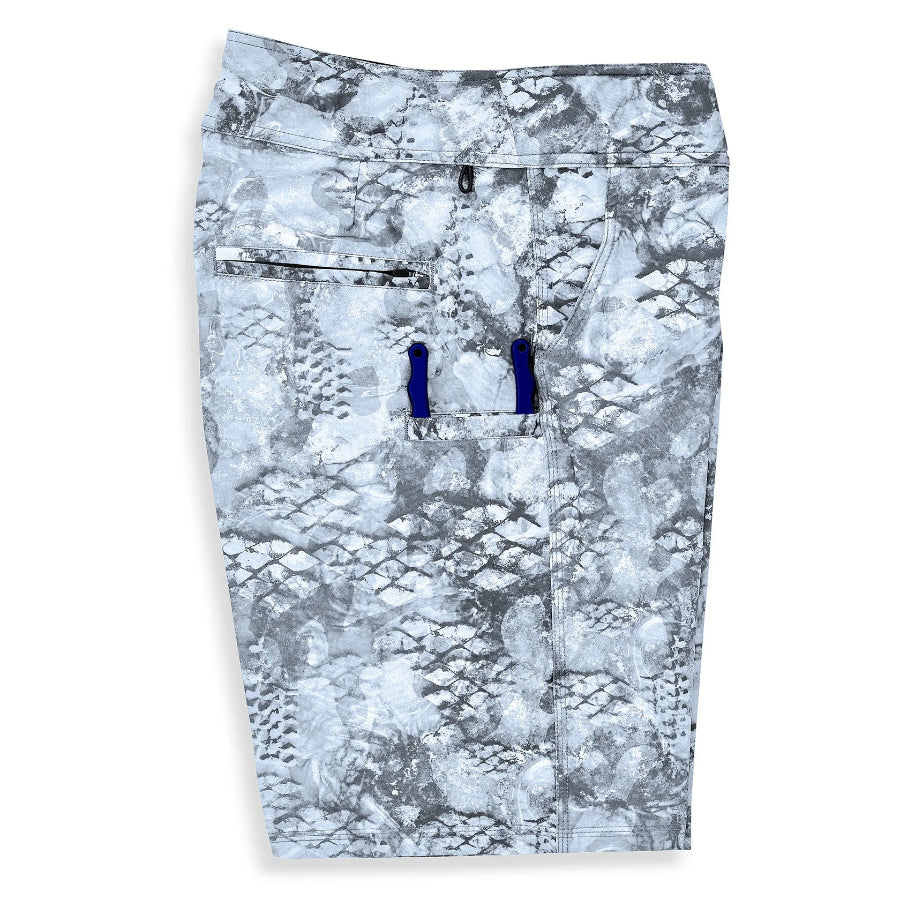 The SCALES First Mates™ shorts were born of need and built for functionality. The result is a 19" core fit, 8.5" inseam, 4-way stretch hybrid ultimate fishing short with a padded chamois waistband to relieve pressure points from rod handles while fighting a fish. Additionally, the reinforced technology provides extra comfort and support in the process. The large walkshort-style pockets, lined with quick-dry mesh, can hold any tackle while the plier pocket is 600 denier spun tough polyester and eliminates tool snagging with easy access. Built to Slay.