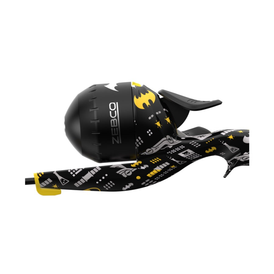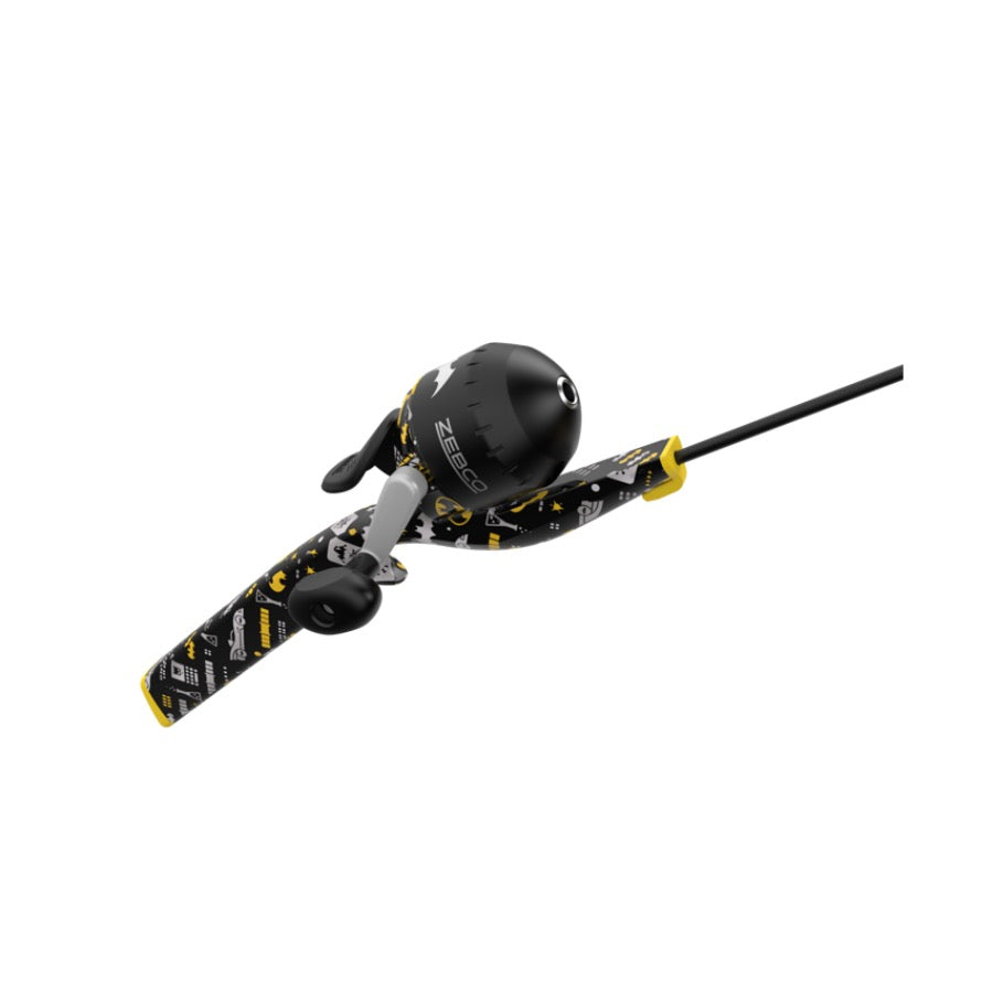Conquer every great adventure with the Zebco® Batman™ Floating Spincast Combo. The reel features a dial-adjustable drag, a 2.6:1 gear ratio, and comes pre-spooled with 6 lb. Zebco line so you are ready to hit the water instantly! The solid fiberglass rod features a floating handle and a tangle-free tip so your quest for big bites never has to come to an end. You don’t need superpowers to be a hero, get out and have a blast with Zebco’s Batman Floating Spincast Combo.